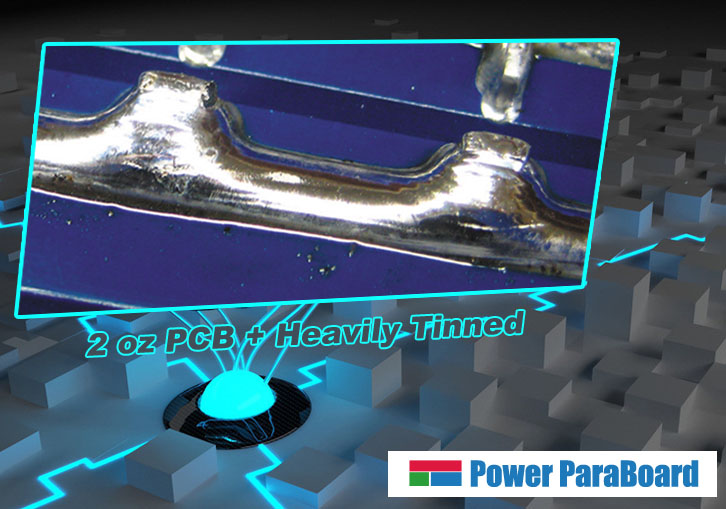 ParaBoard is made of selected high quality components. The PCB is made of two ounce copper and the main power circuit is heavily tinned to allow the use of high current. ParaBoard products have been fully tested under 25 A continuous current, and is safe to be load at 35A for a short time (10 - 30 minutes).